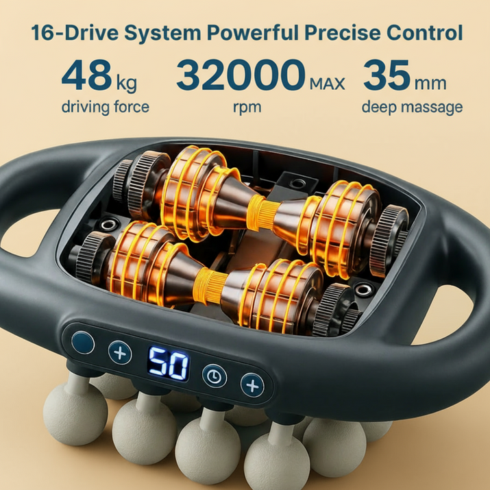 Answer 2: Yes, the device comes with 16 interchangeable heads that are designed for different muscle groups, allowing you to customize your massage experience to effectively target areas like the neck, shoulders, back, thighs, and calves.
